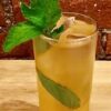 Gently muddle the mints leaves in a tall glass. Add Bourbon, peach puree and lemon juice and fill the glass with ice. Fill the glass to the top with iced tea, stir well in the glass to combine ingredients and garnish with a mint sprig!